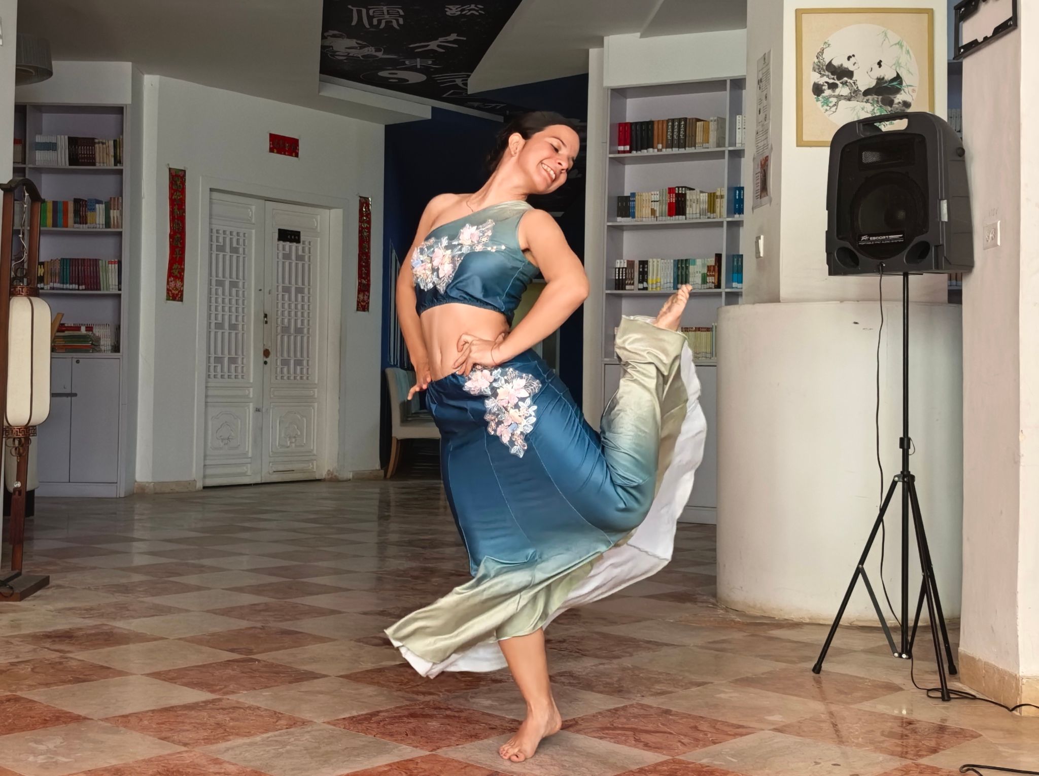 本次春节活动分为节目表演与文化体验两个部分。节目环节中,傣族舞轻盈灵动,新疆舞《亚丽古娜》热情欢快,孔院舞蹈团的表演将现场气氛不断推向高潮,赢得阵阵掌声。《甜蜜蜜》旋律响起时,熟悉的歌声引发共鸣,现场洋溢着温馨氛围。表演结束后,教师们与大家分享了自带的点心和新春小礼物,在互动交流中传递节日问候与真挚心意。