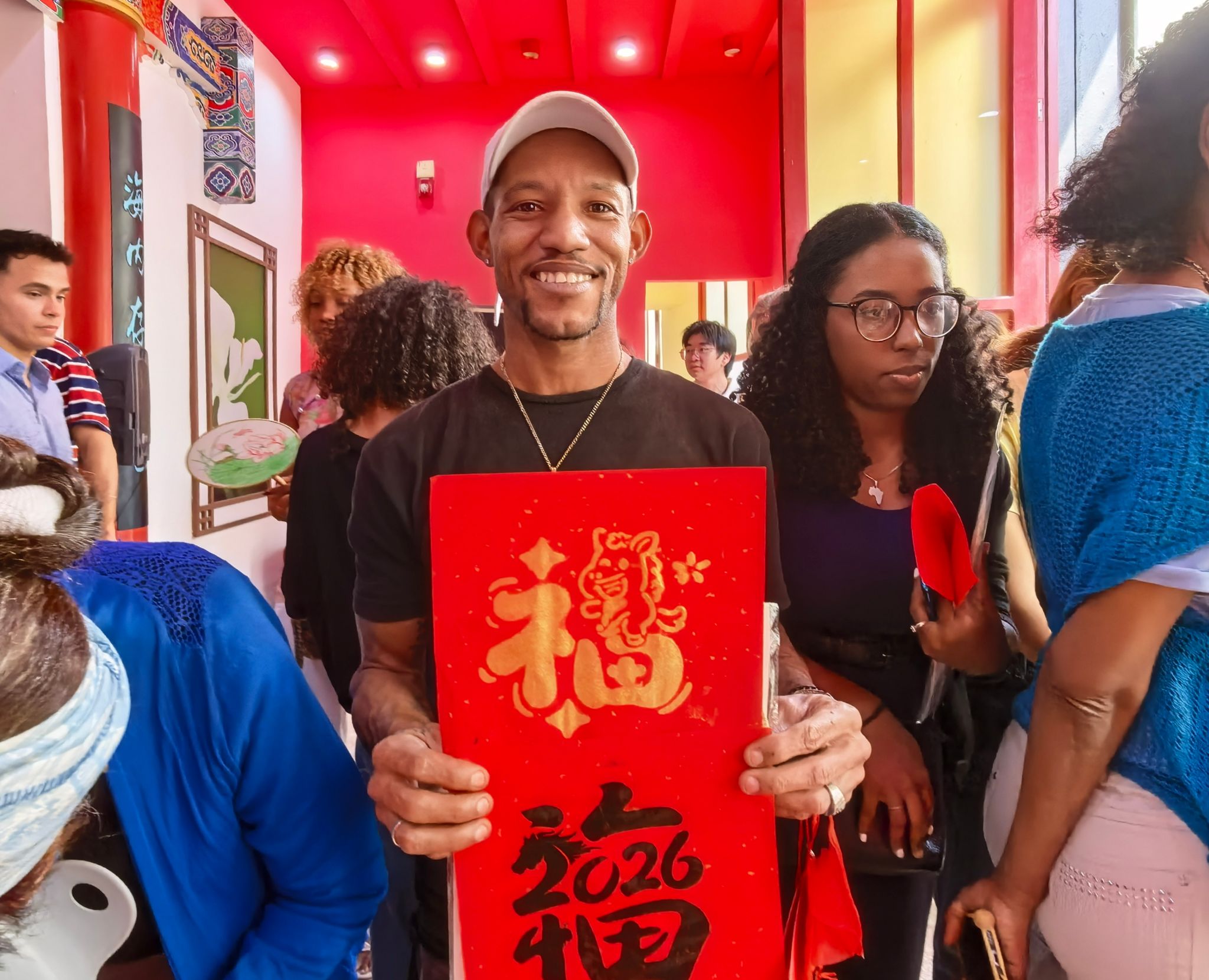 文化展位同样人气十足。书法展位上,老师现场书写“福”字等吉祥汉字,来宾纷纷提笔体验;绘画展位提供模板与颜料,吸引不同年龄段参与者共同创作;拓印展位以“福”字为主题,大家动手操作,拓出属于自己的新春纪念,将“福气”带回家。