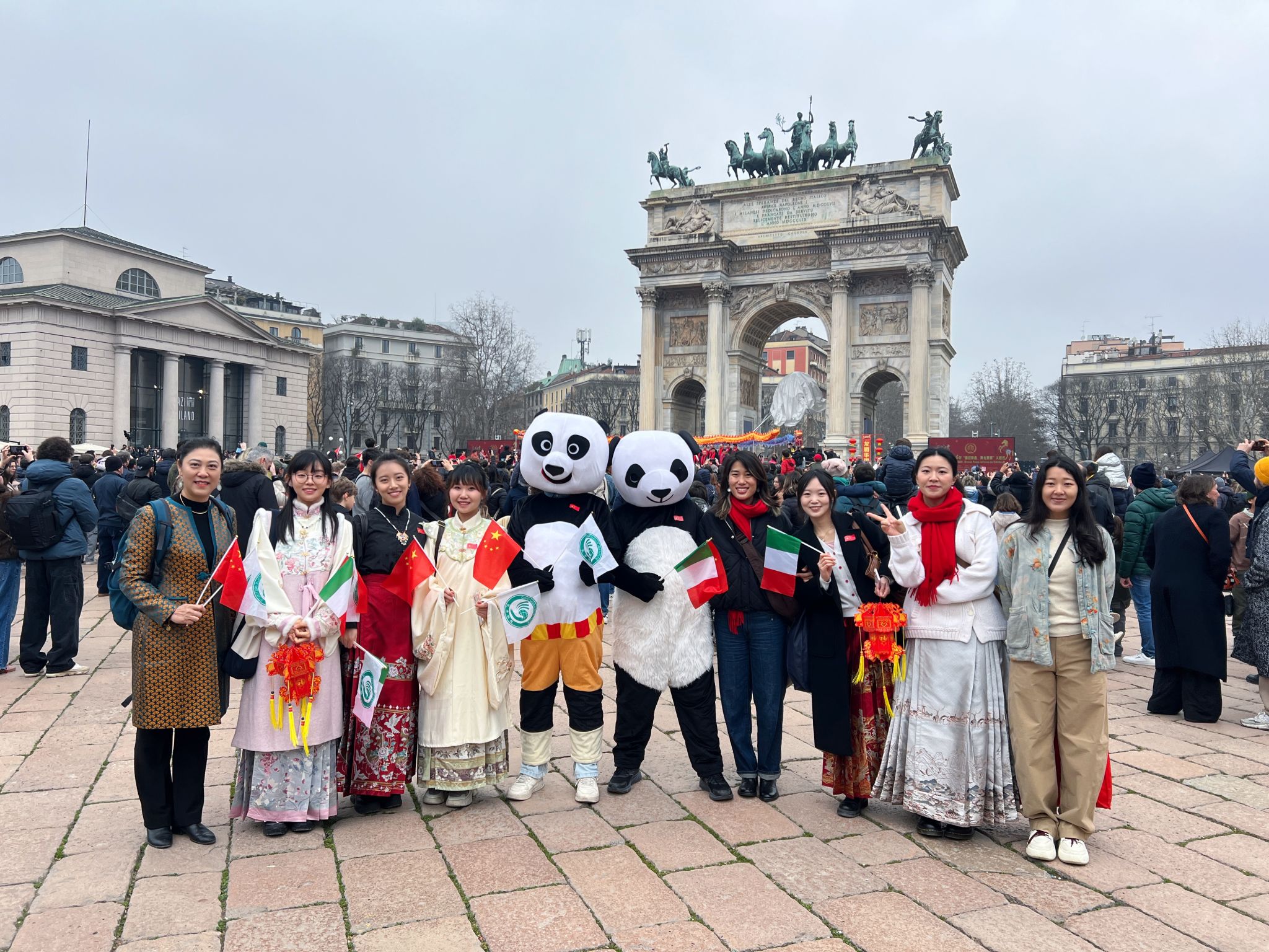 今年的春节对于米兰而言意义非凡,由于新春庆典时间与冬奥会赛期重叠,特意调整至3月1日举行。这一安排使得中华农历新年的浓厚年味与奥林匹克的运动激情在这座城市实现了完美邂逅。作为传播中国语言文化的重要窗口,意大利圣心大学孔子学院与米兰华人侨团在和平门下见证了“中国红”与“冰雪白”的交相辉映。