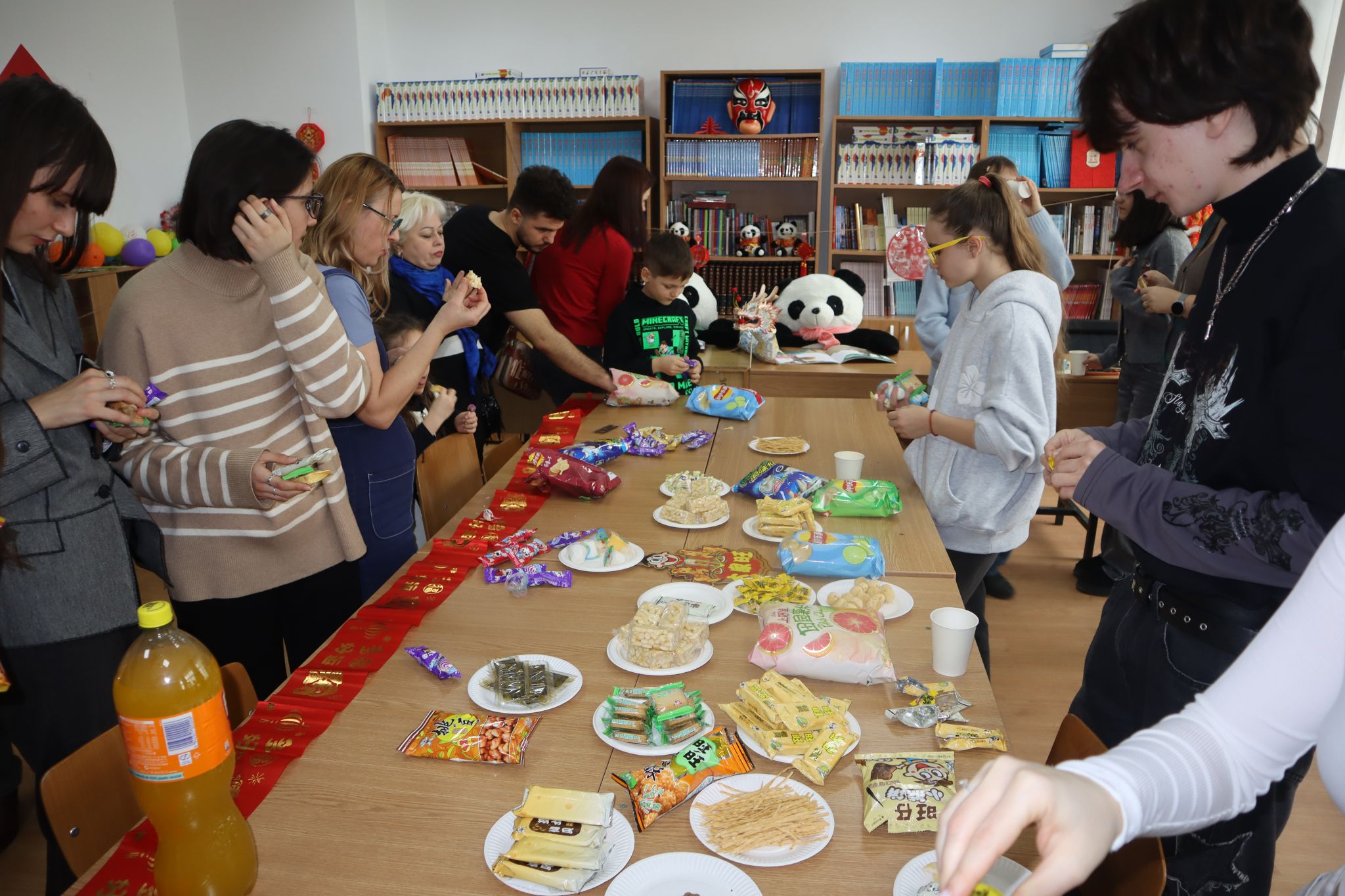 为营造浓厚节日氛围,活动现场还特别准备了从中超采购的中国传统零食。其中,充满年味的“旺旺大礼包”深受学生喜爱,现场洋溢着欢声笑语,浓浓年味拉近了彼此距离,也让学生们在味觉体验中感受中国春节文化的温馨与喜庆。
