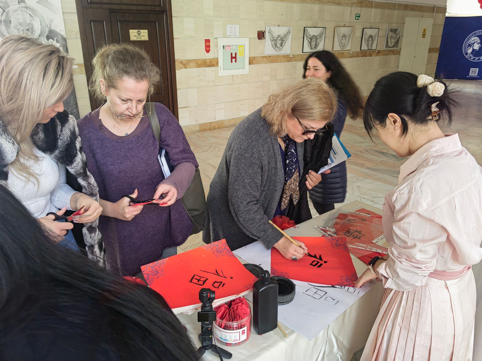 北语新闻网3月12日电(通讯员 龚兴雨 摄影 龚兴雨)新春佳节将至,为弘扬中华优秀传统文化,深化中罗人文交流,2月12日,罗马尼亚康斯坦察奥维迪乌斯大学孔子课堂(康港课堂)在该校主楼Corp A成功举办新春文化体验活动。