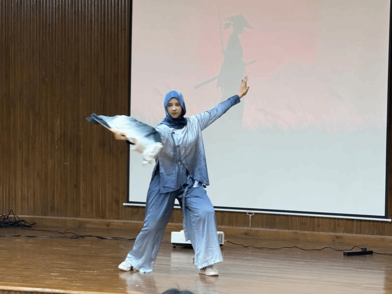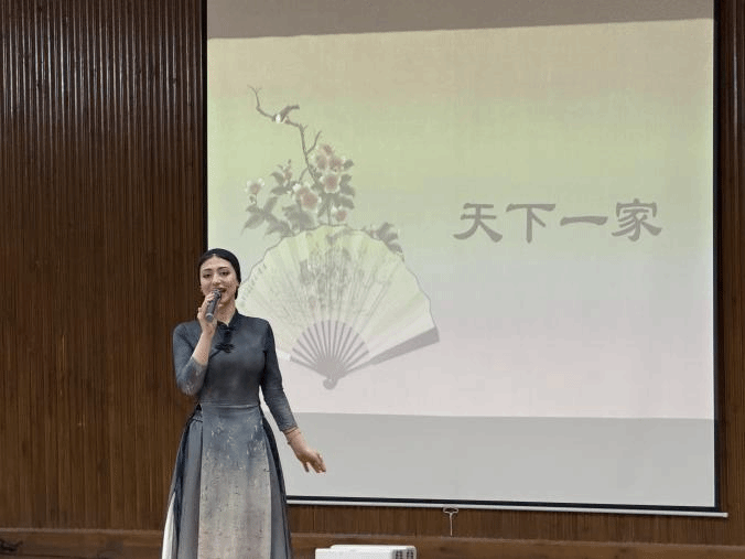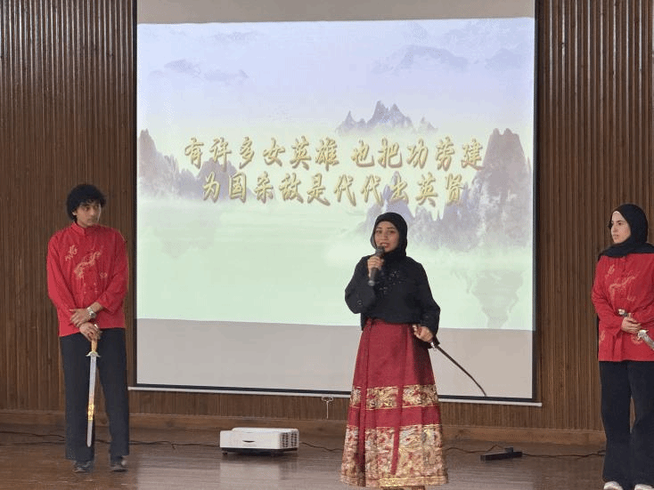 在才艺展示环节,选手们各展所长,用多样的形式展现中华文化的独特魅力。娜达选手通过配音与快板表演,生动活泼地展现了良好的语言模仿能力与舞台感染力;汪雅选手将朗诵、歌唱与舞蹈相结合,多种艺术形式交相融合,展现出扎实的综合才艺;马小怜选手表演经典豫剧选段《花木兰》,以细腻的唱腔与饱满的情感,传递出对和平的真挚期盼;诺兰选手朗诵《木兰辞》并配合舞剑,生动再现了花木兰替父从军的英勇气概,展现出“巾帼不让须眉”的风采;林虎选手以浑厚的嗓音深情演绎《春江花月夜》,勾勒出一幅幽美邈远的画卷。