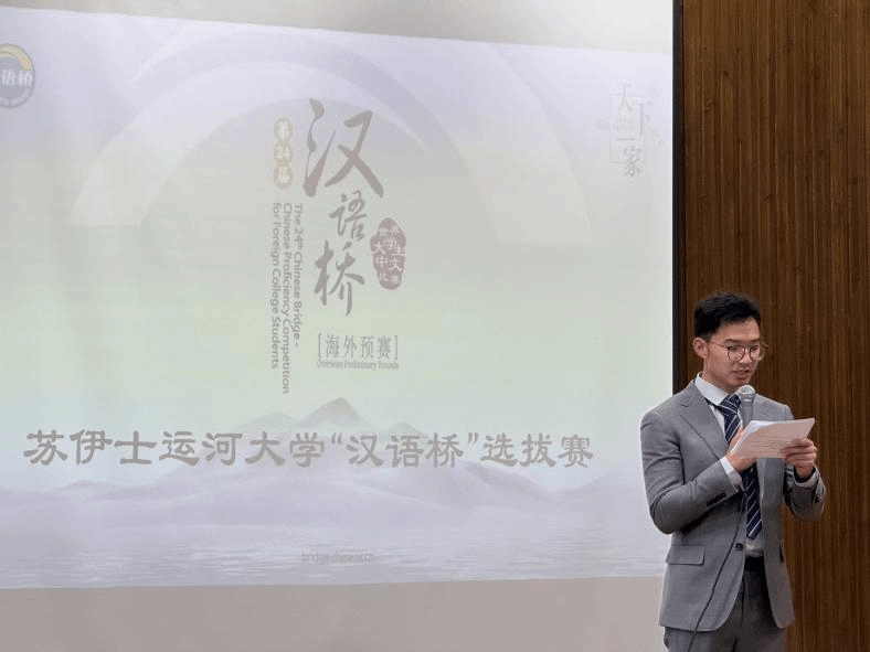 北语新闻网4月7日电(通讯员 刘佳怡 摄影 田森栋)4月6日下午,第25届“汉语桥”世界大学生中文比赛苏伊士运河大学选拔赛在苏伊士运河大学孔子学院礼堂成功举行。本次比赛由苏伊士运河大学孔子学院主办,旨在选拔优秀选手代表我校参加埃及大区赛亚历山大分赛区预选赛。