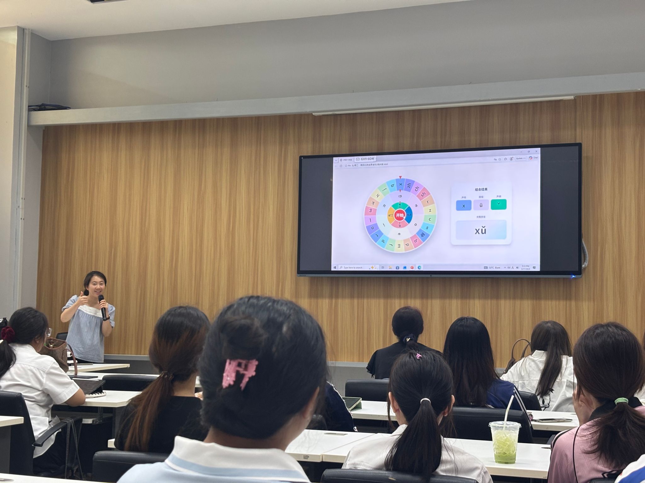 开班第二周,教师带领学生齐读巩固上节课所学声母,夯实基础、查漏补缺。学生们对声母的发音准确度远超预期,展现出浓厚的学习天赋与积极性。课堂上, “拼音大转盘”趣味互动游戏激发学生主动参与、踊跃比拼,课堂上欢声笑语不断,学生们的学习热情被充分点燃。