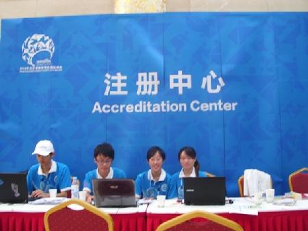 听着她云淡风轻的语气,不禁感叹她的毅力和对志愿服务的热情。陈梦恬继续说到:“短暂的休息后,我又参加了北京奥运城市体育文化节和世界首届武博会外联接待服务工作。世界首届物博会的工作让我印象深刻。和北语许多志愿者一样,我原本被分配在了首都国际机场。但因为志愿者人数不足,我临时被调到了组委会指挥中心的外联接待处,在赛事期间进驻友谊宾馆,在注册中心完成参会人员的注册、餐券发放以及住宿安排。看似毫无技术含量的工作,却需花费不少的体力和脑力,有时甚至需要随机应变的智慧:参会人员到达机场和酒店的时间不定,因为时差问题一些国家的运动员常常是凌晨到达宾馆,作为组长,我几乎是24小时守在注册中心,常常两三天都不能睡上几个小时;住宿安排和财务明细问题颇多,光“比赛对手不能住一起”这一条规定就很费脑筋;在寻找安检中遗漏下来的枪支等违禁物品的过程中,我虽然有些害怕,但还是积极配合武搏会工作人员和使馆人员,最后使问题顺利解决。一场武搏会下来,我成长了不少,所在的团队也被评为市级优秀志愿服务团队。”