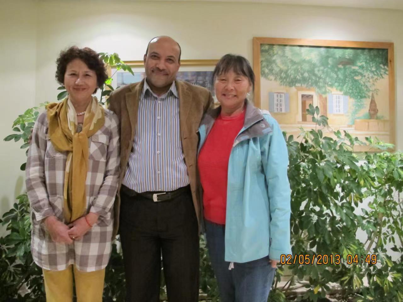 2013年1月5日下午,希夏姆驱车两个半小时从艾因·夏姆斯大学来到了我下榻的金字塔饭店。这是一个五星级饭店,坐落在开罗市郊的西南角上。将近20年后的相见,二人几乎相拥而泣。他清着哽咽的嗓子,我擦着含着泪花的双眼。当年的瘦小伙微微发福,头顶发际线后移了不少,留起了小胡子。我们各自述说着离别后的岁月,方方面面说个没完。不知不觉天色已晚,在落日的余晖中金字塔塔尖在闪闪发光。临告别时他从口袋里掏出一个U盘说:“老师,请你帮我看看我写的几篇论文,如有不当的地方,请帮我改改!不着急,以后从Email发给我就成。”我让他把论文拷贝到我随身带来的笔记本电脑中。一共是五篇。