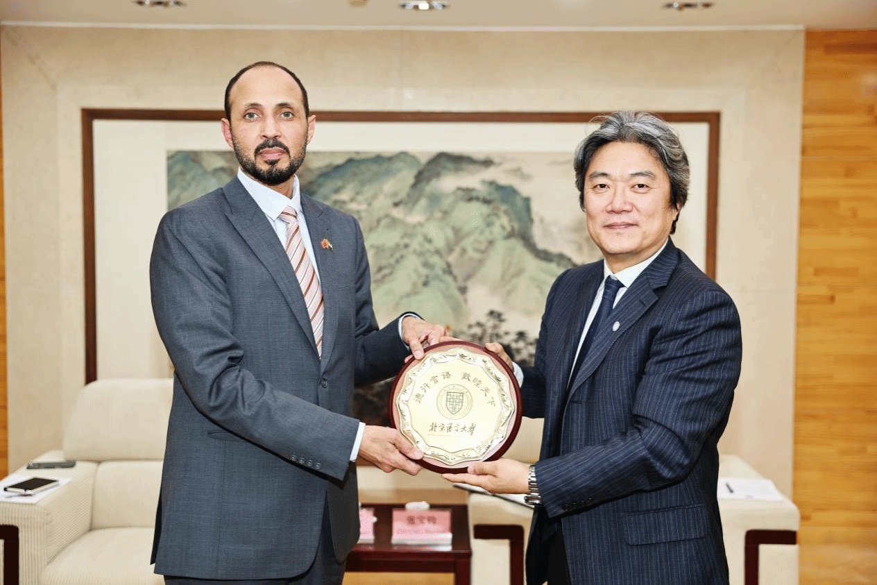 阿卜杜勒阿齐兹・阿尔卡赫塔尼准将感谢北语的热情接待。他指出,中阿政府长期保持友好关系,阿联酋总统高度重视中文教育,目前全国已有171所学校开设中文课程。近年来,赴华留学的阿联酋学生数量翻番,他们不仅是中文和中国文化的学习者,更是两国交往的重要纽带。作为中国在中东地区最紧密的投资伙伴之一,阿联酋对通晓中文、熟悉中阿文化的人才需求日益增长,这为双方深化合作提供了广阔空间。他对与北语这样享有国际声誉的高水平大学建立合作关系倍感荣幸,期待双方合作早日落地。