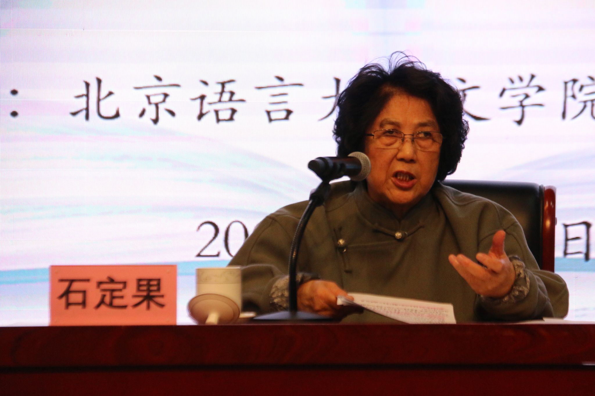 北语新闻网10月22日电(通讯员 刘浩宇 摄影 尚玉景)10月13日,文学院、教师教育学院主办的文苑英华大讲堂“立志欲坚不欲锐,成功在久不在速”讲座在教一209教室顺利举办。讲座由著名汉语史、文字学专家石定果教授主讲,文学院纪委书记、党委副书记姜西良主持。文学院党委书记闫冬出席本次讲座。