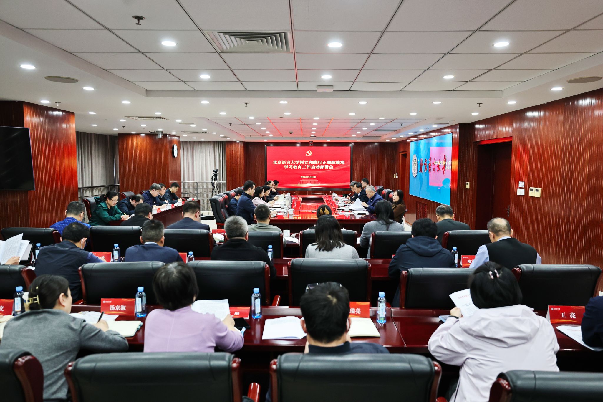 北语新闻网3月12日电(通讯员 姚美先 摄影 魏达)3月12日,我校召开树立和践行正确政绩观学习教育工作启动部署会,传达学习习近平总书记关于树立和践行正确政绩观学习教育的重要讲话和重要指示精神及党中央、教育部党组有关工作要求,部署全校开展学习教育工作。党委书记倪海东发表讲话,校长、党委副书记段鹏主持会议,党委副书记、纪委书记罗建晖介绍学校实施方案和相关工作安排。